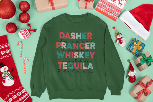Dasher Dancer Prancer Whiskey Vodka Tequila Blitzen Unisex Crewneck Sweatshirt